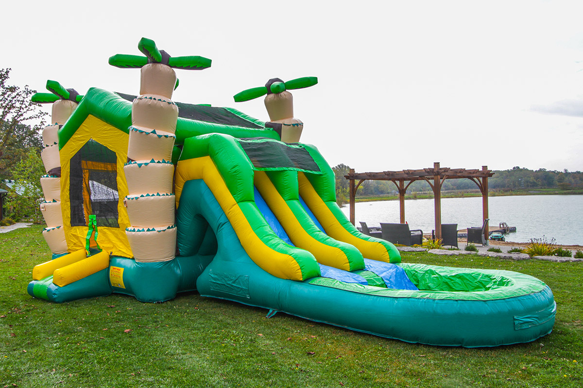 Transport yourself to a tropical paradise with the “Tropical Dry Combo,” a versatile inflatable designed for up to 8 participants. This island-inspired marvel features a vibrant bounce area and a dual-lane slide, offering a dynamic and engaging experience for adventurers of all ages. Adorned with inflatable palm trees on the outside, the Tropical Dry Combo sets the stage for a playful escape into a tropical oasis. For an additional cost, this inflatable gem can transform into a refreshing Wet Combo, allowing participants to slide into a watery adventure and beat the heat in style. Embrace the tropical vibes and choose the “Tropical Dry Combo” for a perfect blend of bouncing, sliding, and splashing fun!